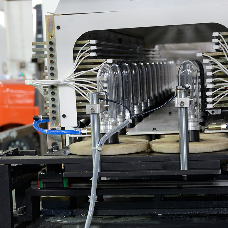 此设备采用单腔 设计,专为生产10升至15升 的PET瓶 优化。与多腔机相比,单腔设计在大型容器生产上结构更稳固,锁模力更强,能确保3-5加仑 这类大容量瓶子的壁厚均匀、成型稳定,成品率高。全自动运行,省心省力